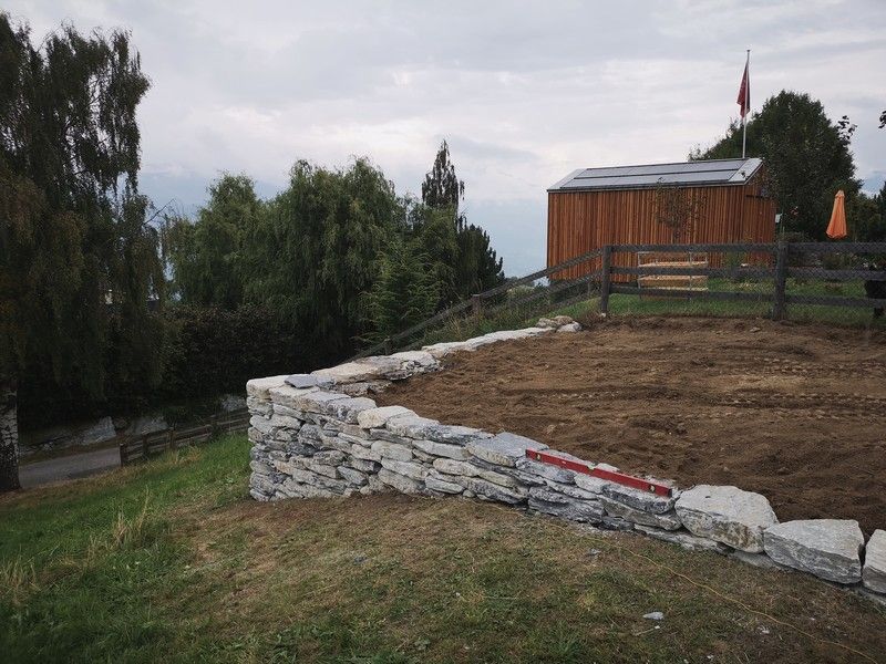 • Prix entre 70 et 95 Chf de l'heure, TVA incluse. Ceci est le tarif horaire qui sert de base au calcul du prix de la réalisation. Les besoins en matière (pierres, bois, etc ) sont facturés à part